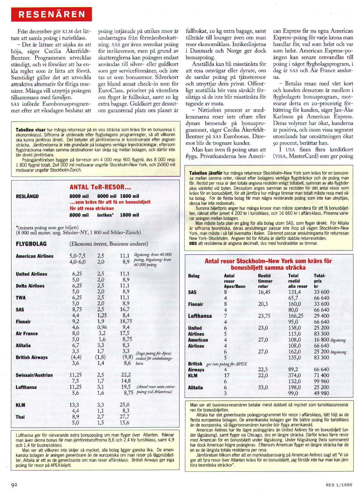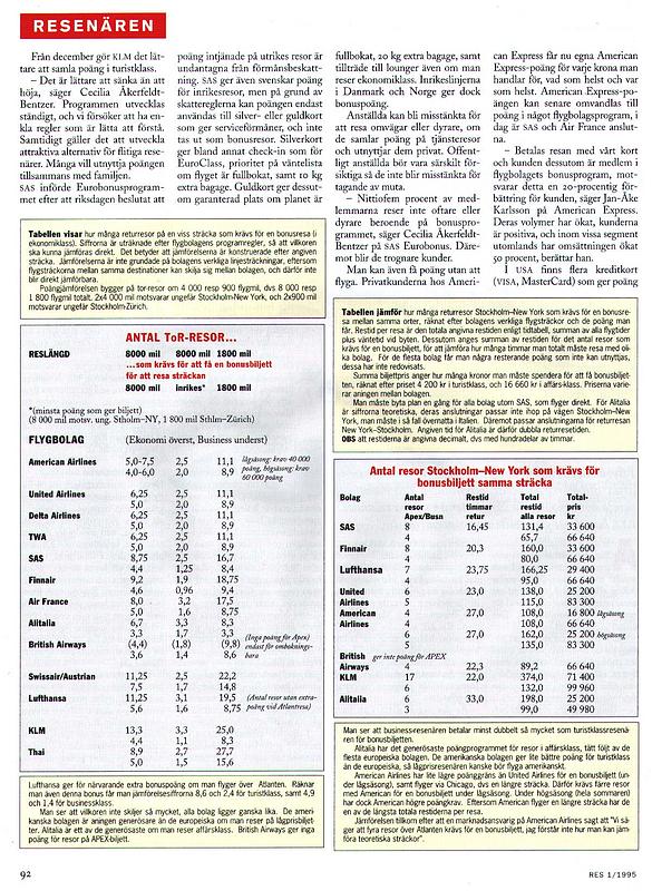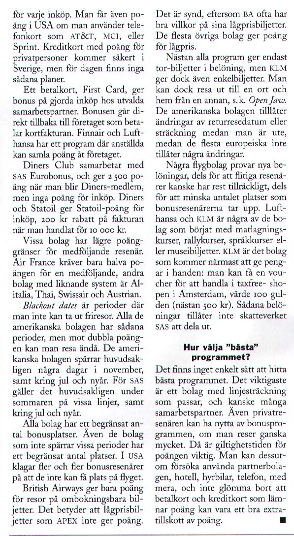 About the frequent flyer bonus programmes of several airlines - which is the best? Comparision tables and text.