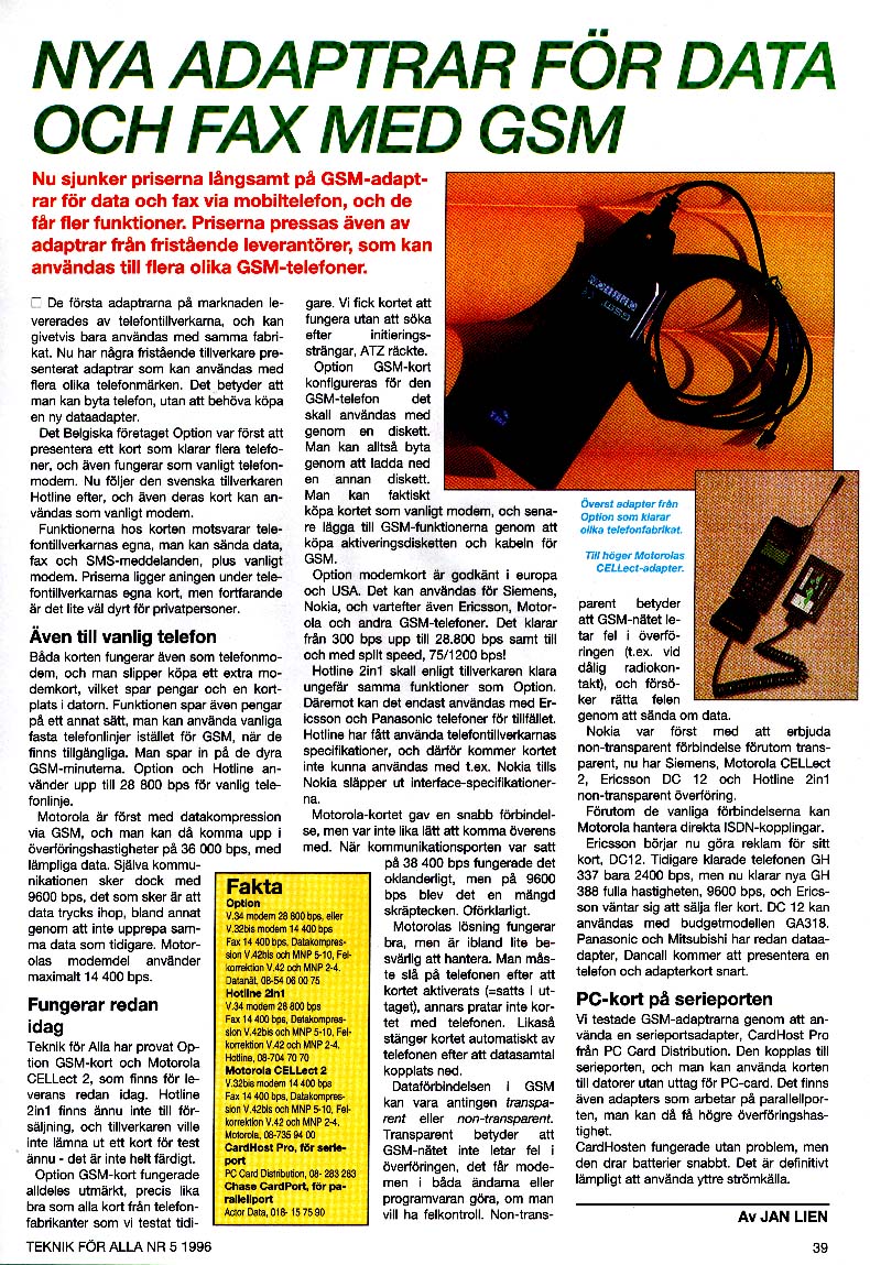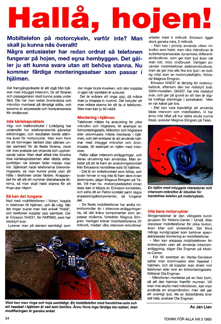 These are stories about technology in general. I have written much about mobile phones, computers, but also about TV antennas, motorcycles, and much more. This magazine was one of the first dedicated to technology in Sweden, and started in the 1940's. Now it has folded.